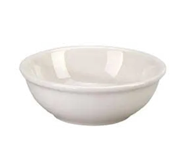 Enhance your restaurant's visual appeal with the Vertex China, DMG-24, China Bowl. This nappie bowl is perfect for serving a variety of dishes, from soups and salads to pasta and rice. With a capacity of 10 oz. and a diameter of 5-1/4", it provides ample space for generous portions. The round shape and rolled edge add a touch of elegance to your table setting, while the vitrified china construction ensures durability and long-lasting performance. Microwave and dishwasher safe, this bowl offers convenience and ease of use in a busy commercial kitchen. Part of the Del Mar Green Collection, it features a beautiful American White color that complements any restaurant decor.