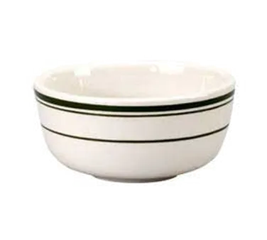 Curate a timeless dining ambiance with Vertex China's DMG-95 Del Mar Green Collection Bowl. This round, 9-1/2 oz. bowl is perfect for serving soups, salads, and appetizers in your commercial restaurant. Crafted from vitrified china, it offers exceptional durability and is both microwave and dishwasher safe, ensuring convenience and ease of use in a busy kitchen. The elegant Del Mar Green color adds a touch of sophistication to your table setting, while the American White interior provides a clean and classic look. Whether you're running a fine dining restaurant or a casual eatery, the DMG-95 bowl from Vertex China is a versatile and reliable choice that will elevate your culinary presentation and impress your guests.