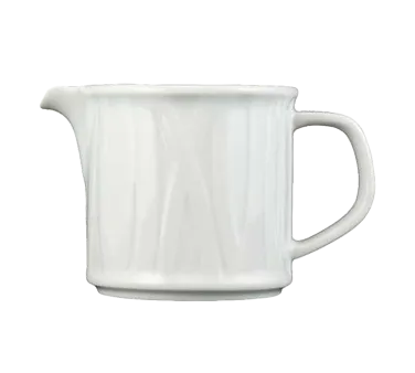 Transform your dining atmosphere easily with the Vertex China, GV-CM-M Creamer / Pitcher. This premium porcelain creamer is designed to elevate your restaurant's beverage service. With a capacity of 5-1/2 oz., it is perfect for serving cream or milk alongside coffee or tea. The creamer features an embossed design and a polished foot, adding a touch of elegance to your tabletop presentation. Its bright white color complements any table setting, while the Euro Collection's Grass Valley Water Colors mango hue adds a pop of color. Made by Vertex China, a trusted name in the industry, this creamer is durable and built to withstand the demands of a commercial restaurant. Upgrade your beverage service with the Vertex China, GV-CM-M Creamer / Pitcher.