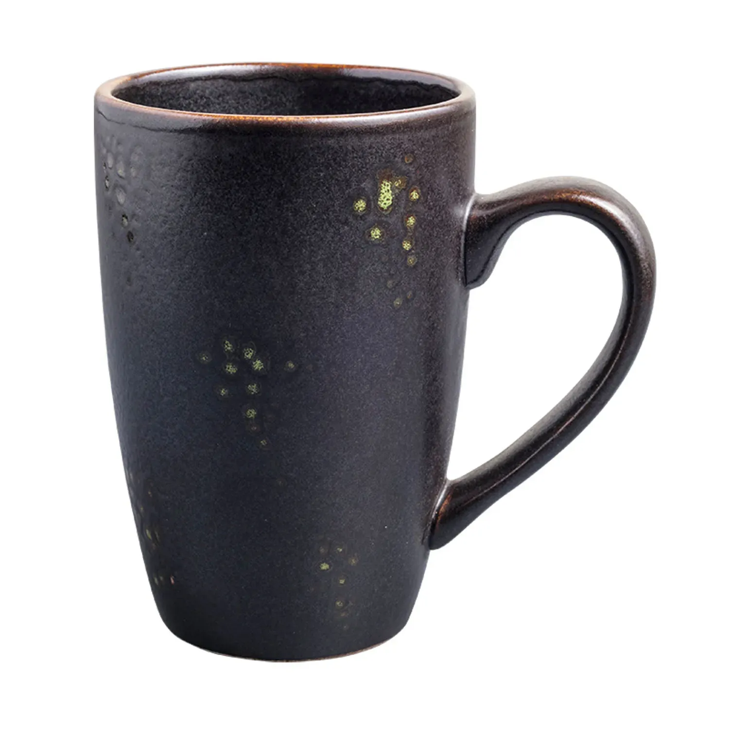 Enhance your restaurant presentation effortlessly with the Vertex China, LMJ-178 Mug. This premium mug from the London Moonstone Collection is designed to elevate your dining experience. With a capacity of 10-1/2 oz., it is perfect for serving hot beverages like coffee, tea, or hot chocolate. The hand-painted matte black/jade reactive glaze gives each mug a unique and sophisticated look, making it a stylish addition to any tabletop. The fully glazed foot and scratch-resistant, aluminum oxide reinforced body ensure durability and longevity, even with frequent use in a busy restaurant setting. Made of high-quality porcelain, this mug is both elegant and functional. Upgrade your restaurant's drinkware collection with the Vertex China, LMJ-178 Mug and impress your customers with its beauty and practicality.