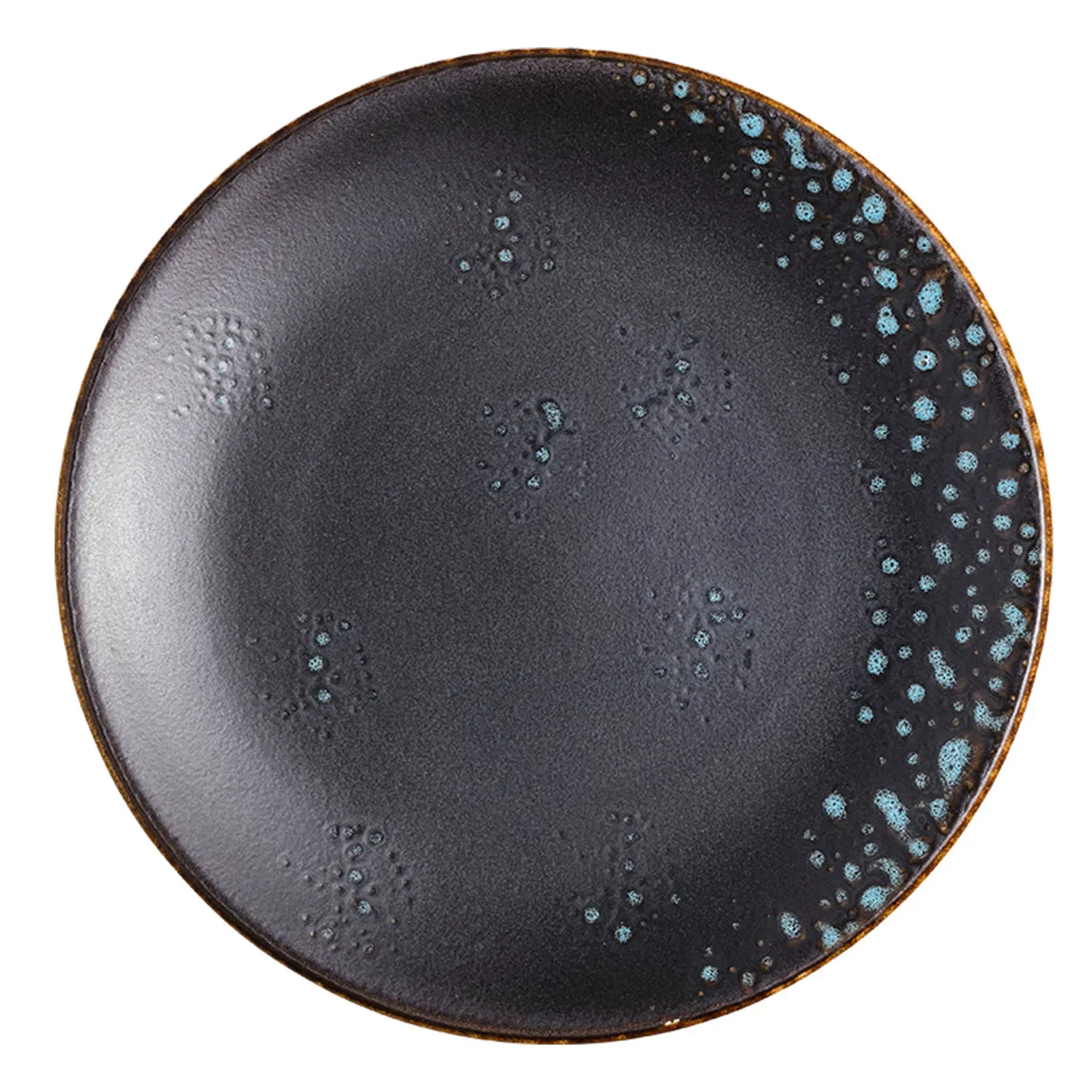 Simplify your tabletop presentation with the Vertex China, LMS-C16 Plate. This 10" round coupe plate is perfect for commercial restaurant use, offering both style and durability. Hand-painted with a matte black and sky blue reactive glaze, this plate from the Premium London Moonstone Collection adds a touch of elegance to any dining experience. The fully glazed foot and scratch-resistant, aluminum oxide reinforced body ensure long-lasting performance, even in high-traffic environments. Made of porcelain, this plate is not only beautiful but also practical, as it is easy to clean and maintain. Trust Vertex China, a reputable vendor known for their high-quality china products, to elevate your restaurant's dining experience with the LMS-C16 Plate.