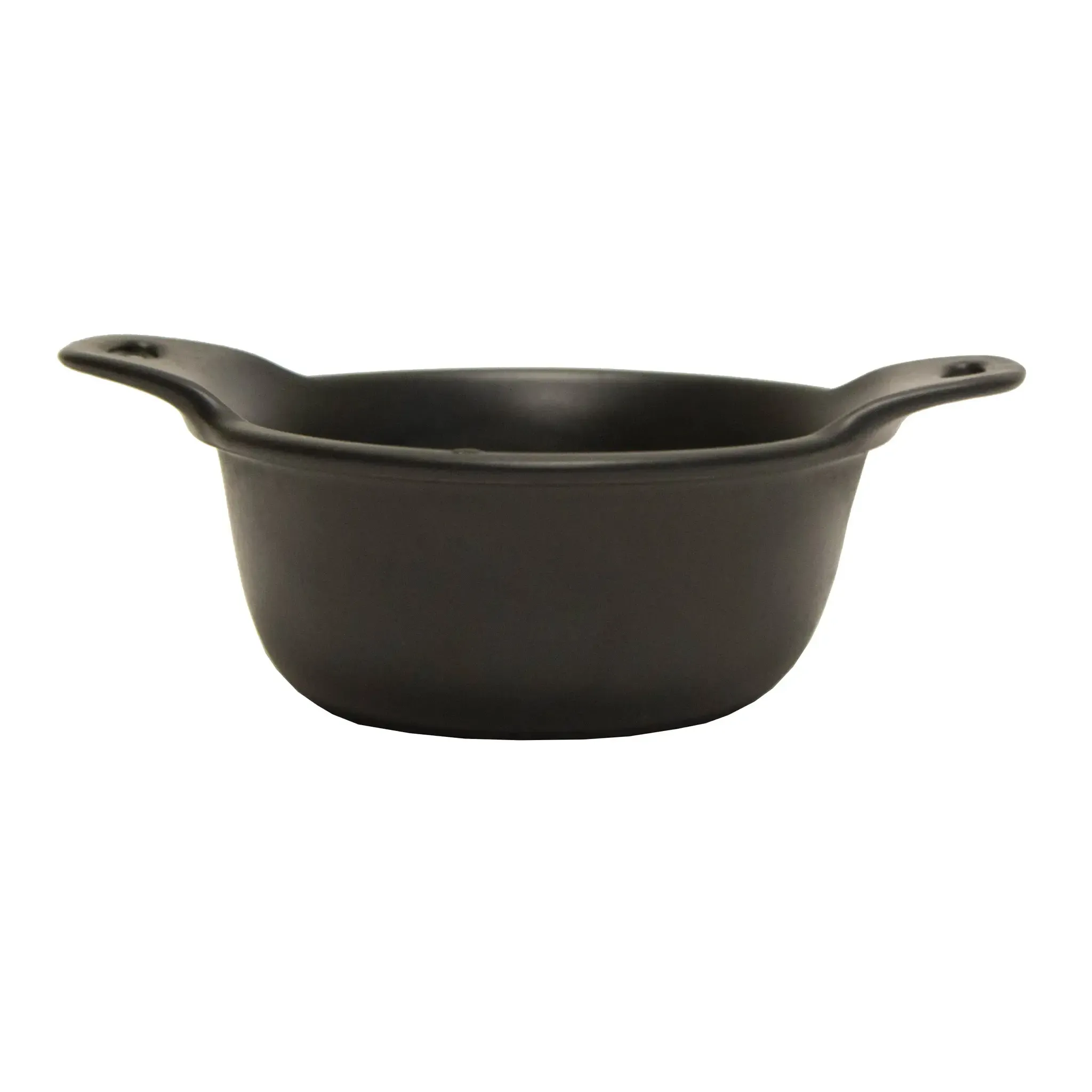 Elevate the dining experience with Vertex China, OB-RBK, Baking Dish, China. This premium porcelain baking dish is designed to meet the demands of commercial restaurant use. With a capacity of 5 oz. and a round shape measuring 3-3/4" in diameter, it is perfect for individual servings or side dishes. The matte black finish adds a touch of sophistication to any presentation, while the scratch-resistant material ensures long-lasting durability. This versatile dish is microwave, oven, freezer, and dishwasher safe, making it convenient for busy restaurant kitchens. The handles provide easy and safe handling, allowing for seamless service. Trust Vertex China for high-quality, authentic products that enhance the dining experience.