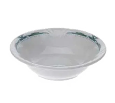 Improve your restaurant's visual allure with the Vertex China, PA-10-OE China Bowl. This soup/cereal bowl is designed to elevate your dining experience with its elegant and sophisticated look. Made from premium porcelain, this bowl features an embossed design and a polished foot, adding a touch of luxury to your table setting. With a capacity of 11 oz. and a diameter of 6-1/2", it is perfect for serving soups, cereals, and other delicious dishes. The bright white color of this bowl enhances the presentation of your food, making it visually appealing to your customers. Part of the Euro Collection, the Palm Orient Express design adds a unique and stylish element to your restaurant's ambiance. Elevate your restaurant's dining experience with the Vertex China, PA-10-OE China Bowl.