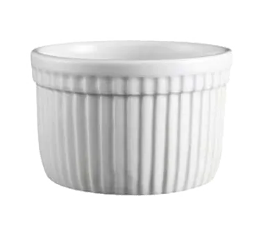 Simplify your tabletop presentation with the Vertex China, RMK-6-P Ramekin/Sauce Cup. This versatile and stylish piece is perfect for commercial restaurant use. With a capacity of 6 oz. and a diameter of 3-3/8", it is ideal for serving sauces, condiments, and individual portions of desserts. The fluted design and rolled edge add a touch of elegance to any table setting, while the bright white color enhances the presentation of your culinary creations. Made from high-quality china, this ramekin/sauce cup is durable and long-lasting, ensuring it can withstand the demands of a busy restaurant environment. Part of the Universal Market Buffet Collection, it seamlessly blends with other pieces in the collection for a cohesive and professional look. Elevate your dining experience with the Vertex China, RMK-6-P Ramekin/Sauce Cup.