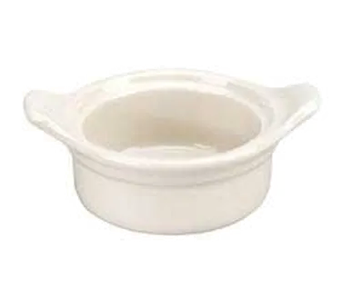 With a capacity of 9 oz. and a diameter of 6-3/8", this round dish is ideal for serving individual portions of delectable casseroles. The dish features a convenient handle and a rolled edge for easy handling and durability. Its classic white color from the American Classics Vista Collection complements any restaurant decor, creating a cohesive and inviting atmosphere. Made by Vertex China, a renowned manufacturer of high-quality china, this casserole dish is built to withstand the rigors of commercial use, making it a reliable and long-lasting addition to your restaurant's dinnerware collection.