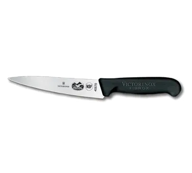 Elevate Your Restaurant's Culinary Journey with the Victorinox Swiss Army, 5.2003.15, Chef Knife. This high-quality knife is a must-have for any commercial kitchen. With its 6" blade and 1-1/4" width at the handle, it offers precise cutting and slicing for all your culinary needs. The black Fibrox Pro handle is not only slip-resistant but also comfortable to hold, ensuring a secure grip even during long hours of use. Designed by Victorinox Swiss Army, a trusted name in cutlery, this knife is NSF certified, guaranteeing its safety and durability. Whether you're chopping vegetables, dicing meat, or slicing through crusty bread, this chef knife will deliver exceptional performance every time. Its sleek design and professional-grade construction make it a valuable addition to any restaurant's kitchen. Invest in the Victorinox Swiss Army, 5.2003.15, Chef Knife and take your restaurant's culinary creations to new heights.