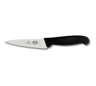 Enhance Your Restaurant's Culinary Efficiency with the Victorinox Swiss Army, 5.2033.12, Chef Knife. This high-quality knife is designed to meet the demands of a commercial restaurant kitchen. With its 5" blade and 1-1/4" width at the handle, it offers precision and control for slicing, dicing, and chopping ingredients. The wavy edge ensures effortless cutting through tough meats and crusty bread. The black Fibrox Pro handle provides a comfortable grip, reducing fatigue during long hours of use. Made from high carbon stainless steel, this knife is durable and resistant to corrosion, ensuring it will withstand the rigors of a busy kitchen. It is NSF certified, guaranteeing its safety and hygiene standards. Whether you're a professional chef or a culinary enthusiast, the Victorinox Swiss Army Chef Knife is a must-have tool for achieving culinary excellence in your restaurant.
