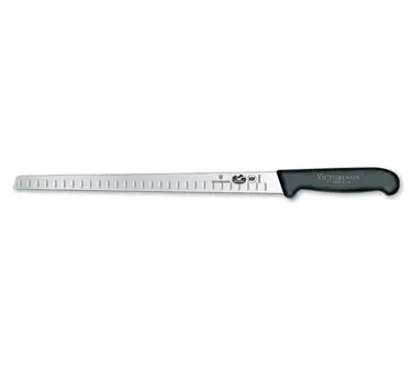 Transform Your Restaurant's Performance with the Victorinox Swiss Army, 5.4623.30, Knife, Slicer. This professional-grade slicer is designed to elevate your culinary experience and streamline your restaurant operations. With its 12" flexible blade and granton edge, this knife effortlessly glides through delicate cuts of salmon, ensuring precision and consistency in every slice. The black Fibrox Pro handle provides a comfortable grip, allowing for extended use without fatigue. NSF certified, this slicer meets the highest standards of safety and hygiene, making it an ideal choice for commercial restaurant use. Whether you're preparing sushi rolls, smoked salmon platters, or seafood entrees, this Victorinox Swiss Army slicer is a must-have tool in your kitchen. Invest in quality and efficiency with this exceptional knife and take your restaurant's performance to new heights.