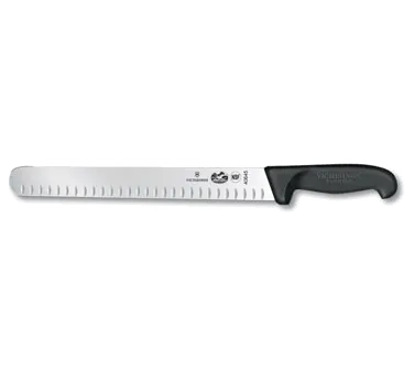 Elevate Your Restaurant's Culinary Ambiance with the Victorinox Swiss Army, 5.4723.30, Knife, Slicer. This high-quality slicer knife is designed to enhance your restaurant's food preparation experience. With its 12" granton edge, the blade features hollowed-out grooves on the side, allowing for smoother slicing and reducing friction. The Fibrox nylon handle provides a slip-resistant grip, ensuring safety and control during use. Made by Victorinox Swiss Army, a trusted name in cutlery, this knife is NSF certified, guaranteeing its quality and suitability for commercial restaurant use. Whether you're slicing meats, vegetables, or even delicate fish, this slicer knife delivers precise and effortless cuts every time. Its durable construction and ergonomic design make it a reliable and comfortable tool for professional chefs. Upgrade your restaurant's kitchen with the Victorinox Swiss Army, 5.4723.30, Knife, Slicer and experience the difference it makes in your culinary creations.