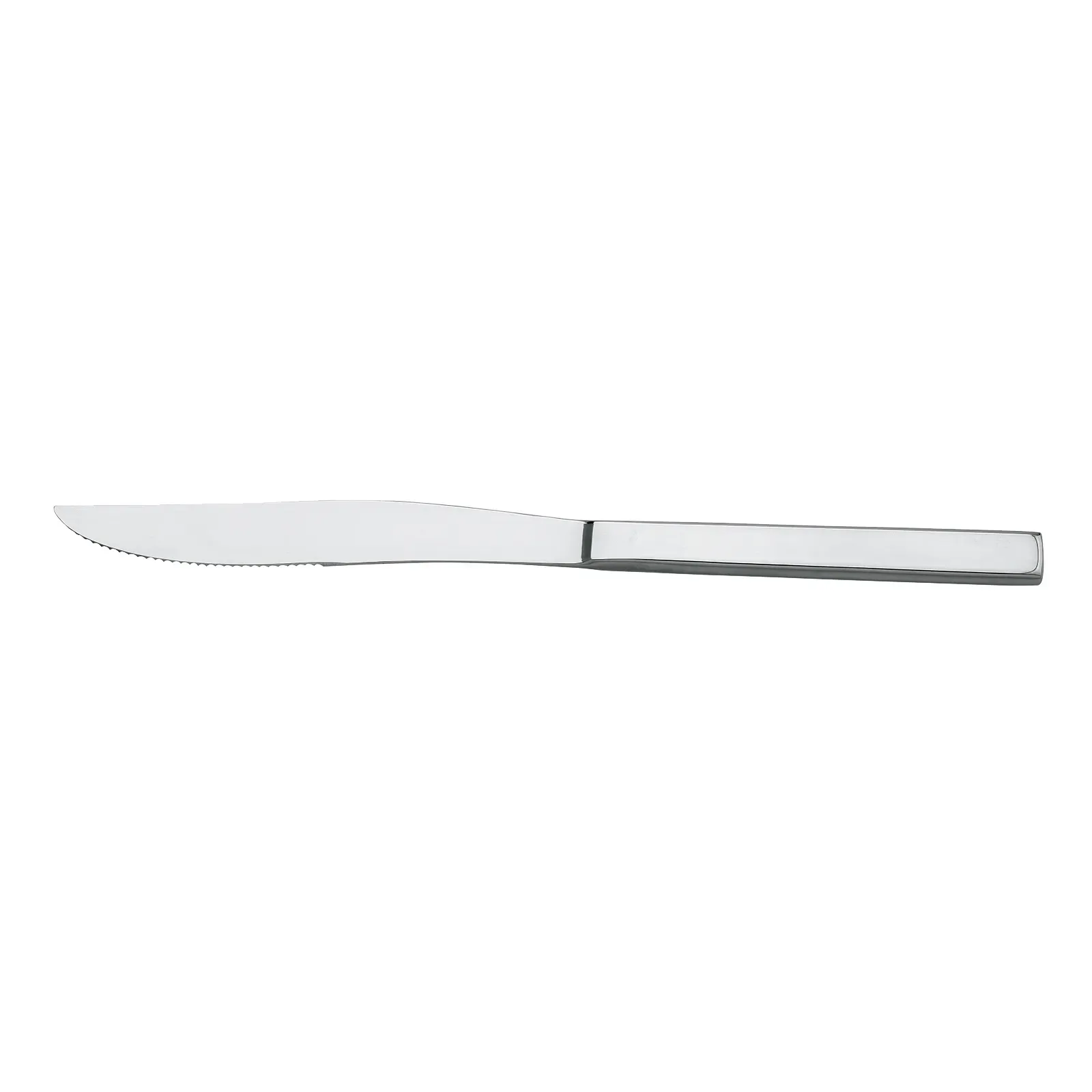 Unlock Culinary Creativity with the Walco Stainless, 0923, Knife, Steak. This modern, rectangular design is perfect for commercial restaurant use. Crafted from hotel weight stainless steel, this semi steak knife measures 9 3/16 inches, providing the ideal balance of precision and durability. The 420 stainless steel construction ensures long-lasting performance, while the mirror finish adds a touch of elegance to any table setting. Whether you're serving tender cuts of steak or juicy burgers, this knife is designed to enhance the dining experience for your customers. Elevate your culinary creations with this exceptional steak knife.