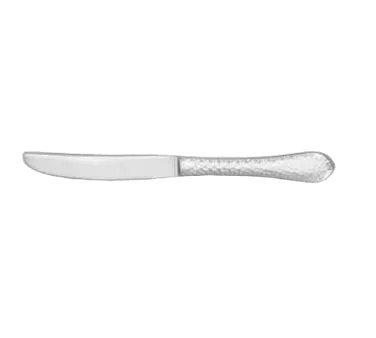 Maximize culinary productivity with the Walco Stainless, 6345, Dinner Knife. This classic 17th-century hammered design adds a touch of elegance to any commercial restaurant setting. Crafted from 420 Stainless with a Hammered Mirror finish, this knife not only hides fingerprints but also captures light and sparkles, enhancing the dining experience. The mirror finish ensures a sleek and professional look, while the durable construction guarantees long-lasting performance. The knife's 8 13/16-inch length provides the perfect balance of control and precision, allowing chefs to effortlessly slice through meats and vegetables. Whether you're running a fine dining establishment or a bustling bistro, the Walco Stainless Dinner Knife is a must-have tool for enhancing efficiency and delivering exceptional culinary creations.