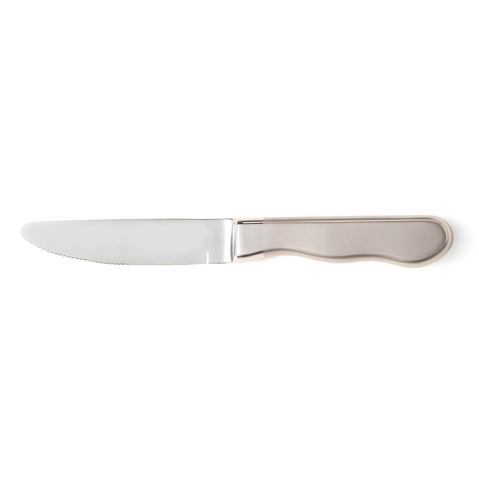 Efficiency for the Modern Chef! Introducing the Walco Stainless 880527R Steak Knife, designed to elevate your restaurant's dining experience. This jumbo steak knife features a 5 1/4" round tip blade, perfect for effortlessly cutting through even the thickest cuts of meat. The blade is made of high-quality 420SS stainless steel, ensuring durability and long-lasting performance. The frosted stainless steel handle adds a touch of elegance to your table setting, while also providing a comfortable grip for your chefs and waitstaff. With a mirror-finished blade and a frosted handle, this knife exudes sophistication and style. Whether you're serving succulent steaks or juicy burgers, the Walco Stainless 880527R Steak Knife is the perfect choice for any commercial restaurant looking to enhance their dining experience.