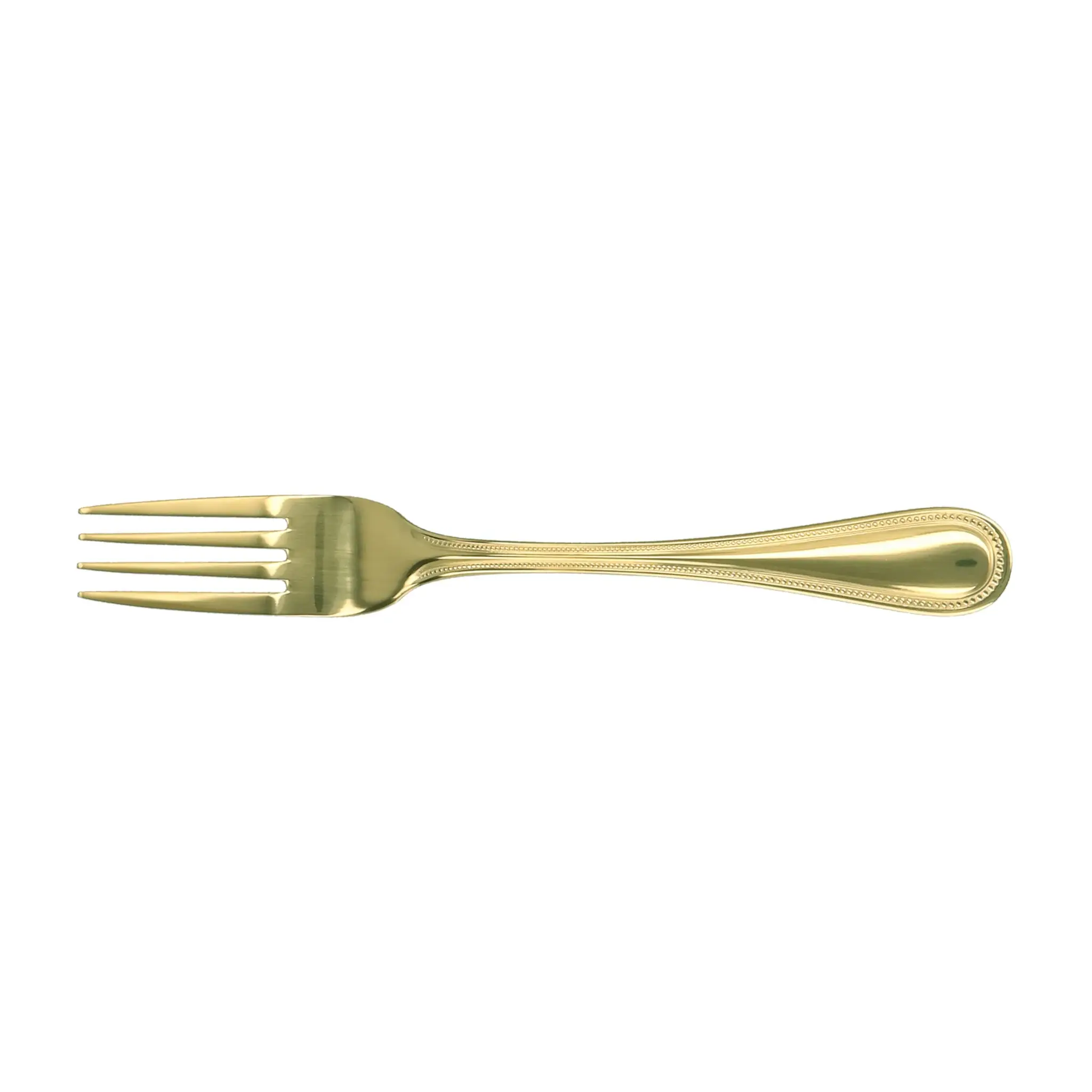 Unleash Kitchen Productivity with the Walco Stainless G27051 Dinner Fork. This high-quality fork is designed to meet the demands of a busy commercial restaurant. Made from durable 18/0 stainless steel, it is built to withstand the rigors of daily use. The PVD handle adds a touch of elegance with its gold finish, making it perfect for upscale dining establishments. With a length of 8-1/8 inches, this fork is ideal for enjoying main courses and can easily handle any type of cuisine. Elevate your dining experience and impress your customers with this stylish and functional dinner fork.