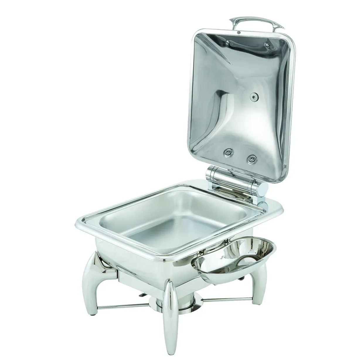 Effortless Kitchen Efficiency with Walco Stainless, WI35LML, Chafing Dish. This rectangular chafing dish kit is a must-have for commercial restaurants seeking optimal food presentation and temperature control. Crafted from 18/10 stainless steel, this induction-capable chafing dish ensures durability and longevity, making it perfect for high-volume use. The solid hinged lid keeps food warm and protected, while the included food pan and spoon holder add convenience and organization to your buffet setup. The burner stand, equipped with a fuel cup, provides a reliable heat source for extended periods. With its sleek design and superior functionality, this chafing dish enhances the overall dining experience for your customers. Walco Stainless, a trusted name in the industry, guarantees the quality and performance of this chafing dish. Elevate your restaurant's efficiency and impress your guests with this exceptional chafing dish.