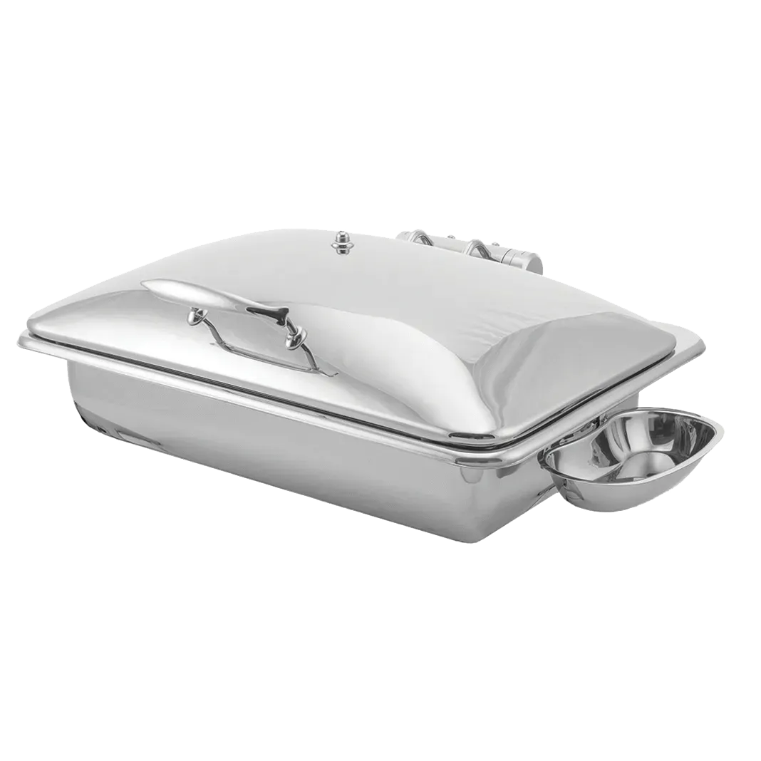Elevate Your Dining Experience with the Walco Stainless WI9UMT Chafing Dish. This rectangular chafer dish is designed to enhance your restaurant's presentation and functionality. Made from high-quality 18/10 stainless steel, it exudes elegance and durability, ensuring long-lasting performance in a commercial setting. The solid hinged lid keeps food warm and protected, while the 8 qt. capacity allows for generous servings. The dish also features a convenient food pan and spoon holder, providing easy access to serving utensils. With its induction capability, this chafing dish is compatible with a variety of heating sources, making it versatile and efficient. Whether you're hosting a buffet, catering event, or upscale dinner, the Walco Stainless WI9UMT Chafing Dish is the perfect addition to your restaurant's tableware collection. Trust in Walco Stainless, a reputable vendor known for their exceptional quality and attention to detail.