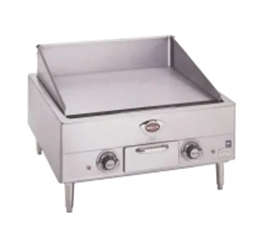 Master the art of cooking with the Wells G-13 Electric Countertop Griddle. This high-quality griddle is designed to meet the demands of a commercial restaurant kitchen. With a smooth polished steel griddle plate measuring 22-1/2" W x 18-5/16" D, you'll have plenty of space to cook multiple items at once. The zoned thermostatic heat control allows for precise temperature adjustments, ensuring that your food is cooked to perfection every time. The stainless steel construction not only provides durability but also makes cleaning a breeze. The removable splashguard helps to contain any mess, keeping your kitchen clean and organized. With 4" adjustable legs, you can easily level the griddle on any countertop surface. Whether you're cooking breakfast, lunch, or dinner, the Wells G-13 Electric Countertop Griddle is the perfect addition to your commercial kitchen.