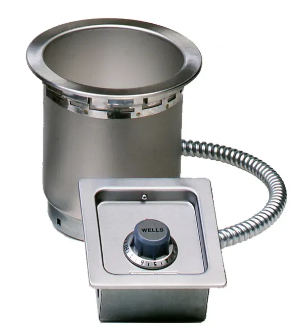 Wells SS-4TDU heavy-duty, top-mount, drop-in round food warmer is designed to hold heated foods at safe and fresh serving temperatures. Accommodates standard 4 quart round inset pans, one-piece stainless steel top flange and heavy-gauge, deep-drawn stainless steel warming pans. Temperature-ready indicator lights and powerful tubular heating elements are located under the warming pans for quick and efficient heating and for even heat distribution. High limits prevent overheating, and Wellsloks for quick and easy installation are standard features. Thermostatic Control, Drain, Non-Insulated, UL Approved, 208/240V.