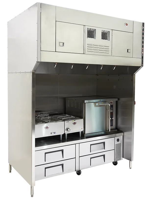 Wells WVU-72 Universal Ventless Hood is Certified Type-1 compliant, UL710B approved recirculation hood system and feature completely self-contained 3-stage air filtration and fire-suppression. It does not require venting outside making it possible to cook in nontraditional locations or when traditional Type-1 hoods and ductwork are impractical, restricted, or too expensive. Operators may use electric cooking equipment under the hood. Completely self-contained ANSULĀ® R-102 system, airflow is 800 CFM, fits through a 36" wide door opening, airflow sensors, and is movable making them ideal for leased spaces. Up to 72" cooking zone for approved electric appliances, 208/240V