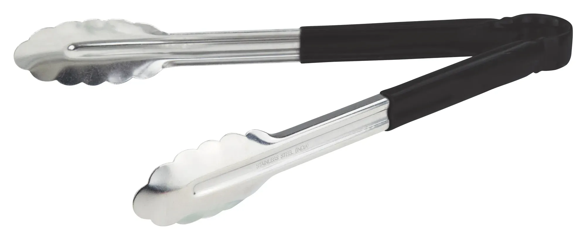 Crafted with a heavy-duty plastic handle, the Winco Utility Tongs provide a comfortable and secure grip, reducing hand fatigue during extended use. The handle's black color not only adds a sleek, professional look but also helps in maintaining a clean appearance, even in the busiest kitchen environments. The stainless steel construction ensures durability and longevity, standing up to the rigors of daily use without compromising on performance.